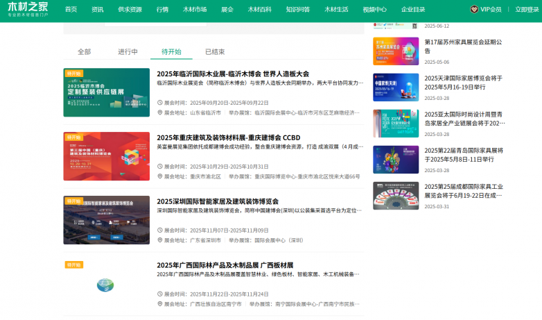 “木材之家”里汇集了大量行业资讯,用户无需零散搜集信息,即可了解市场需求动态和行业新闻资讯,避免因信息滞后导致产品生产与市场脱节。同时,木材之家还整合了全国木材行业展会资源,根据展会时间、参展范围等关键信息,用户可按需参展,不仅能与同行面对面交流,还能直接接触采购商了解需求,并借助展会拓宽推广渠道,挖掘潜在订单。